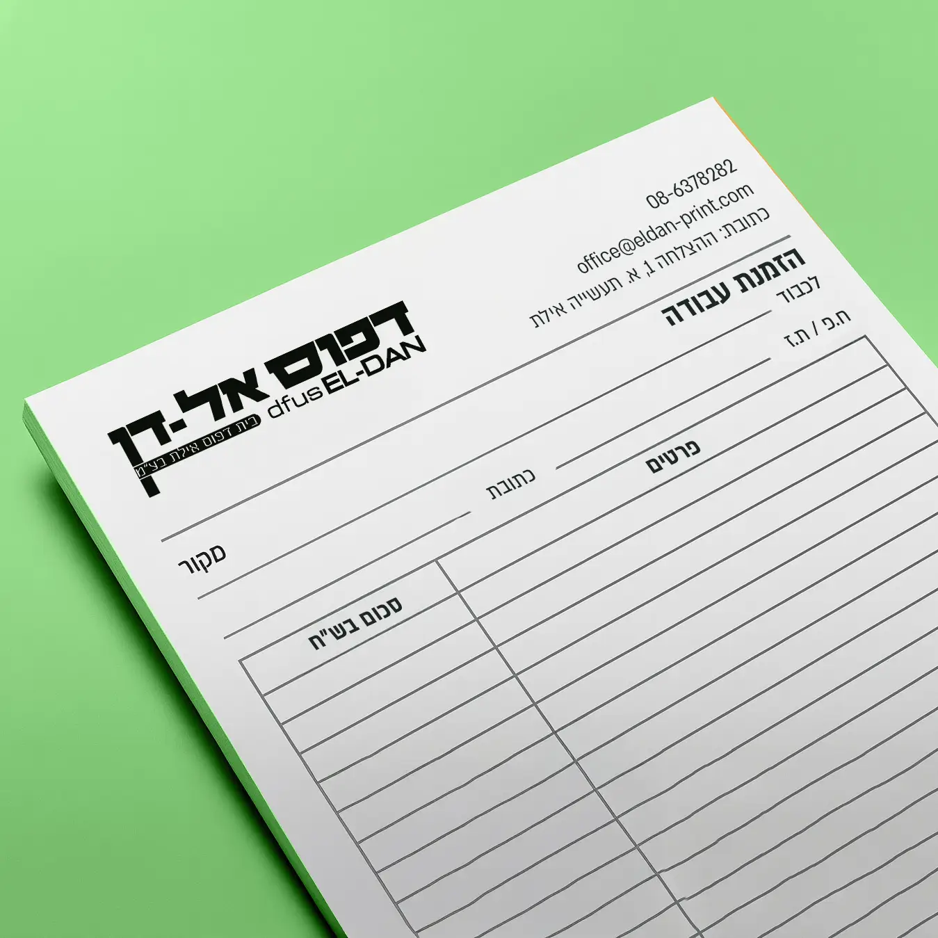 החל מ- ₪180.00 ל־4 יח' הדפסת פנקסי הזמנות עבודה – עם הלוגו והפרטים שלכם